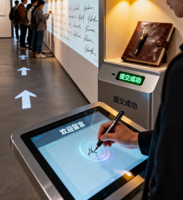 支持将签名同步至展厅大屏或专属展示终端,动态展示观众留名墙,增强参与感与现场氛围,尤其适合艺术展览、品牌发布会等需要 “观众印记留存” 的场景;